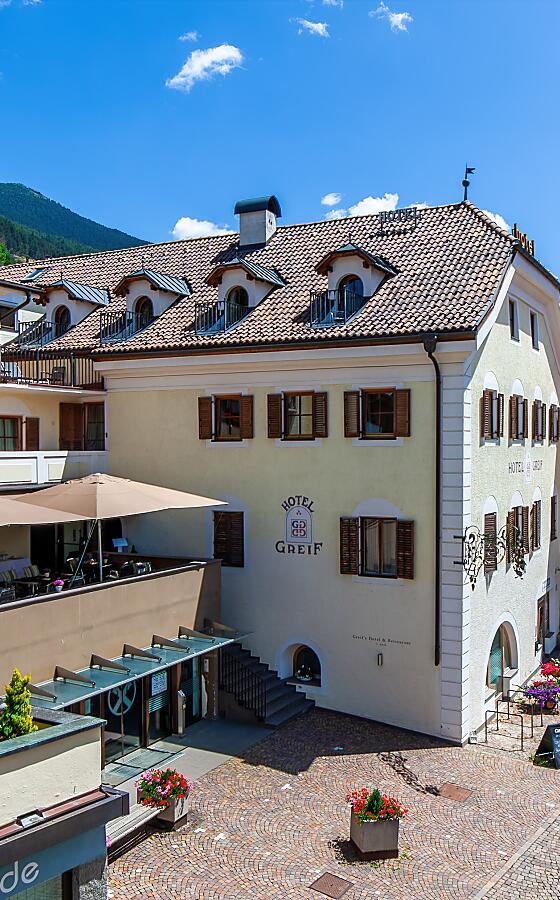 Das Hotel Greif im Obervinschgau liegt im verkehrsberuhigten Dorfkern von Mals und versprüht ein besonderes „So-wie-damals-Flair“. Geblieben sind der Charme und Charakter des Hauses mit seiner über 500-jährigen Geschichte. Neu hinzugekommen sind erfrischende Akzente und viel naturbelassenes Holz. Neben der alten Bausubstanz liegt Familie Sagmeister vor allem die Erhaltung der Gesundheit ihrer Gäste am Herzen. Dies gelingt mit vollwertigen Gerichten, frischen Zutaten aus dem Hotelgarten und gemeinsamer Bewegung in der Vinschger Bergwelt. Die schönsten Ziele sind in unserem Hotel in Mals zum Greif-en nah.