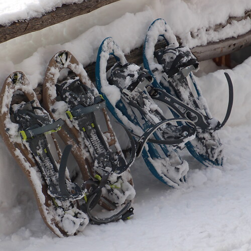 Schneeschuhe und Wanderstöcke zum Ausleihen.